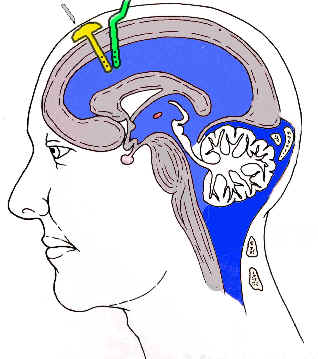 Alternative VerfahrenIch ahne, dass viele, die sich zum ersten mal mit dem Krankheitsbild Hydrocephalus beschäftigen müssen, da sie selbst oder Angehörige betroffen sind, sich dieser Seite zuwenden. Es sei aber vorausgeschickt, dass sie hier keine Alternativmedizin i.S. der Homöopathie u.a. Verfahren aus dem Grenzgebiet oder außerhalb der Schulmedizin vorgestellt bekommen. Dies geschieht beileibe nicht, weil ich mich diesen Heilverfahren verschließe. Auch für mich gilt: wer heilt hat recht. Seien Sie also sicher, wenn mir Verfahren aus der Alternativmedizin bekannt wären (... und wie gesagt: ich bin durchaus offen hierfür), Sie dieses hier erfahren würden. ABER: bisher gibt es definitiv nichts aus dem "alternativen Spektrum", das einen Hydrocephalus kurieren könnte. Denkbar ist zwar, dass einzelne Symptome des Hydrocephalus durch alternative Therapieformen gebessert werden können: z.B. Kopfschmerzen durch Akupunktur. Aber das Krankheitsbild besteht damit fort. Es sind nur Symptome beseitigt. Ein aktiver Hydrocephalus wird aber, wenn er fortbesteht immer zu einer fortdauernden Schädigung des Gehirns führen. Die Beseitigung von Symptomen führt in solchen Fällen dann eher zur Verschleppung einer effektiven, das Fortschreiten der Erkrankung aufhaltenden, Therapie. Vermeiden Sie unbedingt eine solche Form des Selbstbetruges. Denn......., je früher ein Hydrocephalus suffizient therapiert wird, desto weniger kann er ein Gehirn zerstören. ..... und bedenken Sie auch, dass einmal eingetretene strukturelle Schäden am Gehirn nicht mehr zu korrigieren sind. Medikamentöse TherapieEine dauerhaft wirksame medikamentöse Therapie des Hydrocephalus ist nicht bekannt. Es ist aber grundsätzlich möglich über eine begrenzte Zeit die Symptome des Hydrocephalus durch entwässernde Medikamente zu verringern. Durch die entwässernden Medikamente kommt es vorübergehend zu einer Drosselung der Liquorproduktion. Längstens nach 4 - 6 Wochen geht jedoch der Effekt dieser Medikamente verloren. Der Körper " gewöhnt" sich an die entwässernden Medikamente und produziert wieder in normaler Menge den Liquor. Dieser Gewöhnungseffekt ist dafür verantwortlich, dass eine medikamentöse Therapie des Hydrocephalus bis heute nicht möglich ist. LumbalpunktionUnter einer Lumbalpunktion versteht man die Entnahme von Liquor aus dem Nervenwurzelsack (Subarachnoidalraum) im Bereich der Lendenwirbelsäule. Meist werden dabei Liquormengen von 20 - 60 ml entnommen. Dies kann bei einigen Formen des Hydrocephalus vorübergehend zu einer Linderung der Beschwerden führen. Es muß jedoch betont werden, dass nicht alle Hydrocephalusformen mittels Lumbalpunktion behandelt werden können. Weiterhin ist zu bedenken, dass der Körper am Tag etwa 500 ml Liquor produziert. Dies bedeutet, dass selbst bei großzügiger Lumbalpunktion die entnommene Menge an Liquor innerhalb weniger Stunden nachgebildet ist. Lediglich die Tatsache, dass das Stichloch in der harten Hirnhaut, die den lumbalen Subarachnoidalraum umgibt noch einige Tage offenbleiben kann und dann Liquor in geringerer Menge in die Muskulatur des Rückens abfließen kann, wo der Liquor dann resorbiert wird, kann bedingen, dass der Effekt einer Lumbalpunktion über mehrere Tage anhält. Spätestens jedoch wenn das Einstichloch nach meist einer Woche wieder durch Narbenbildung verschlossen ist, wird der Effekt der Maßnahme sich verlieren.